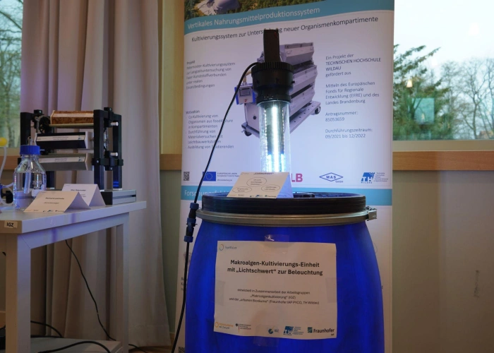 Macroalgae are a promising resource for the food of the future. They grow quickly, require neither fresh water nor arable land and contain a variety of nutrients such as proteins, vitamins and minerals. In the first funding phase of “food4future”, Ulva compressa and Ulva fenestrata - also known as sea lettuce - were successfully identified as model organisms for urban cultivation. Using innovative bio-based materials with functional integration and the use of regional brine water, for example from the Bad Saarow thermal spa, urban cultivation systems for the sustainable indoor production of saline food organisms such as macroalgae, but also halophytes and jellyfish, were developed for the first time.